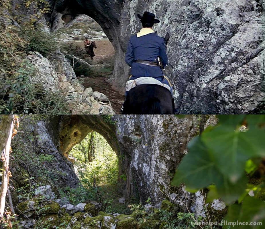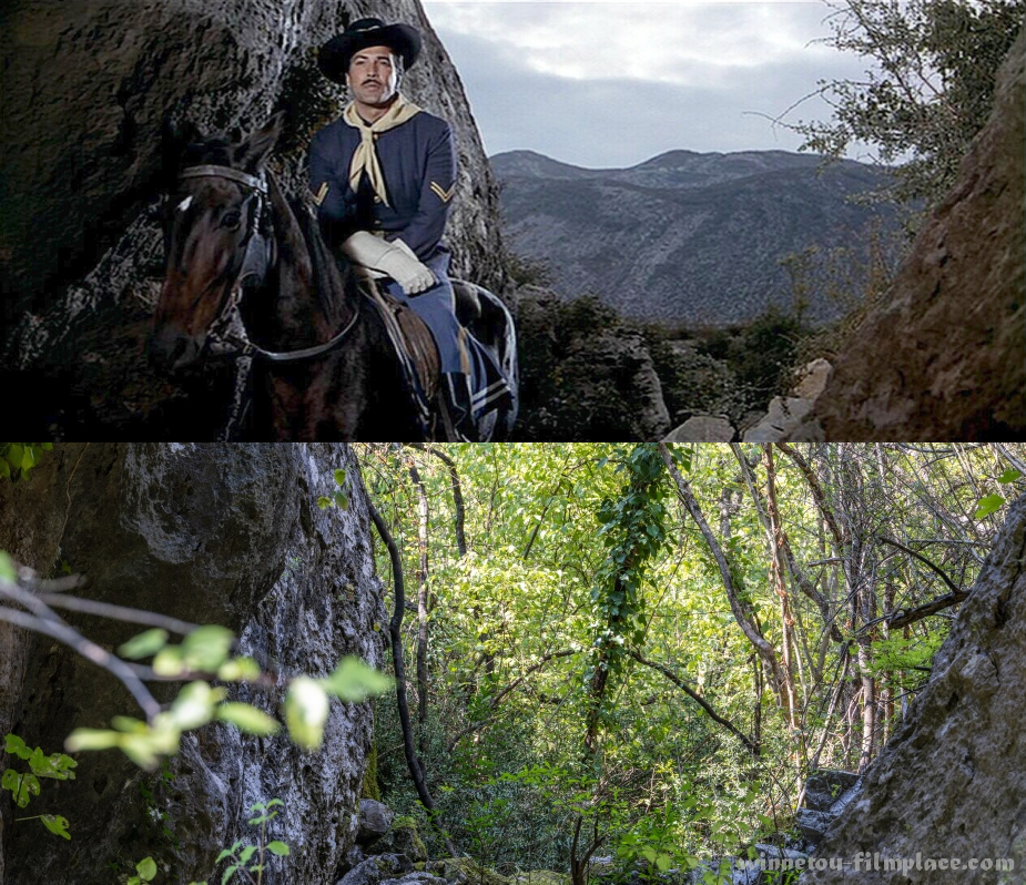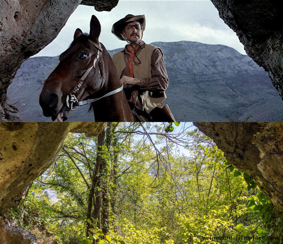 Scéna ve které se potká Burker s desátníkem Bushem (ve skalním oblouku), který ho zastřelí se natáčela v bezprostřední blízkosti ranče, cca. 150m. GPS souřadnice: 42.8295817, 18.0876083